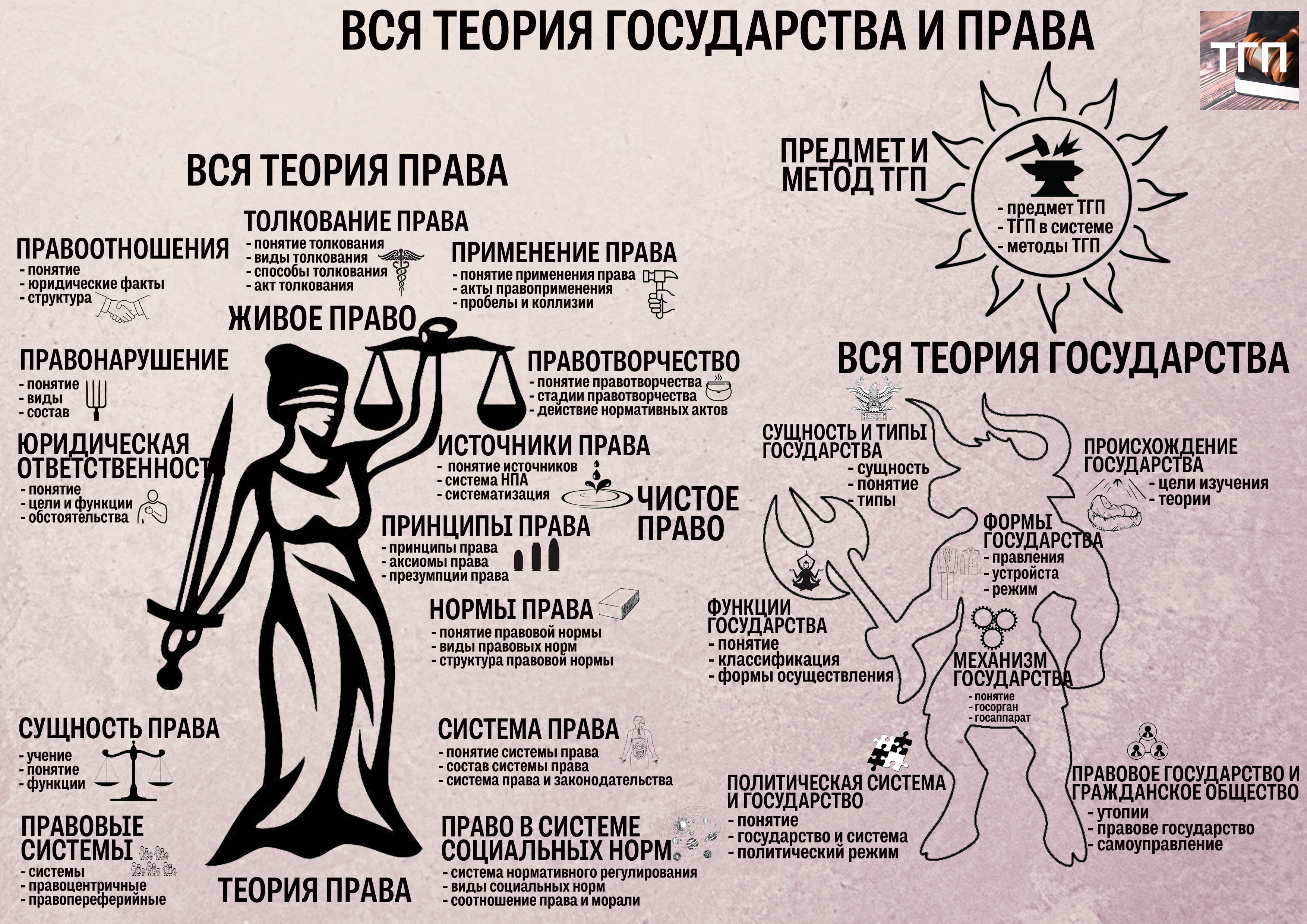 Для прохождения курса необходимо будет по-шагово, неторопливо, выполняя не сложные задания, смотря на иллюстрации и слушая краткие лекции, выучить дисциплину "Теория государства и права" на университетском уровне.